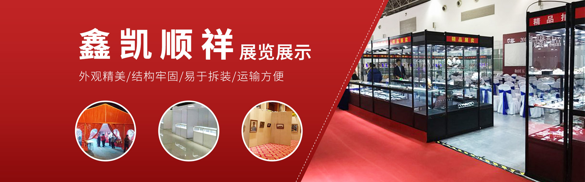 北京鑫凱順祥展覽展示有限公司是鋁合金玻璃展柜、精品展柜、標準展位展板租賃的公司。產(chǎn)品外觀精美,設(shè)計合理標準。鋁材表面色澤亮麗、顏色明快、同與之色彩相配的防火面板組合,可讓產(chǎn)品達到更好的展示效果 。此類展柜外觀精美,結(jié)構(gòu)牢固,易于拆裝,運輸方便,廣泛用于展廳、展覽會,拍賣會,招聘會等活動,為廣大客商帶來很好的展示效果。我們自備大量的各類展柜,提供送貨上門地布置服務(wù),使客戶租用過程中,減少流通環(huán)節(jié),降低客戶費用,客戶省時、省力、省心。憑著我們的經(jīng)驗和實力,誠懇和勤奮,以靈活、快捷、周密的運作,為客戶提供了周到、細致的服務(wù),高質(zhì)量地完成了多個委托會展、拍賣會用品租賃的業(yè)務(wù)。為滿足廣大客戶的需求,本著為客戶服務(wù)的精神,我們?yōu)閺V大來京參加展會的商家提供標準展柜的租賃業(yè)務(wù),也可向外地客戶提供服務(wù)。